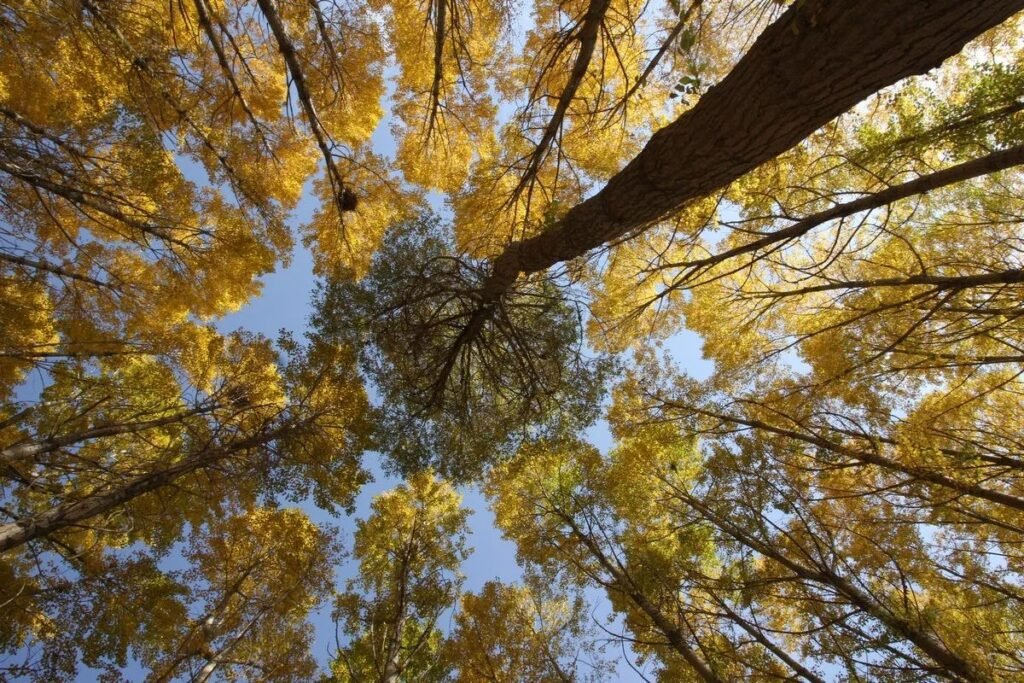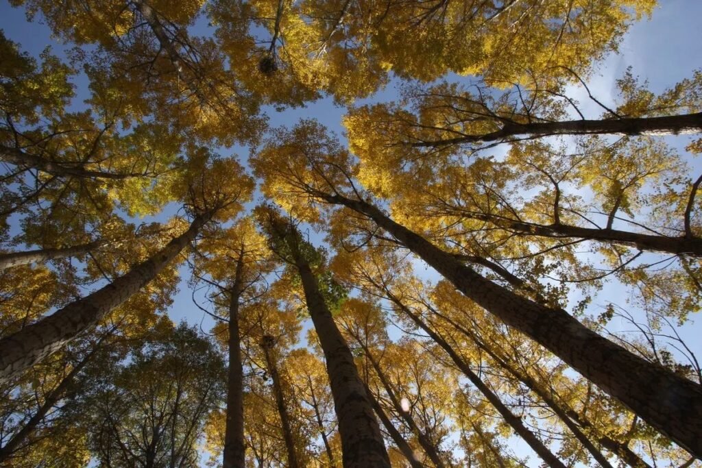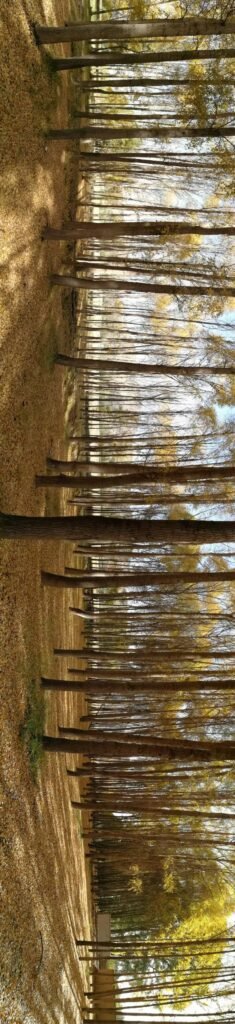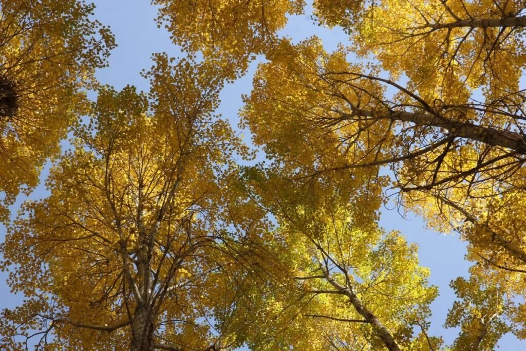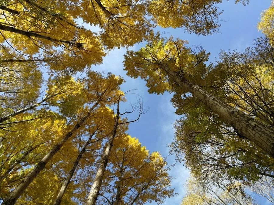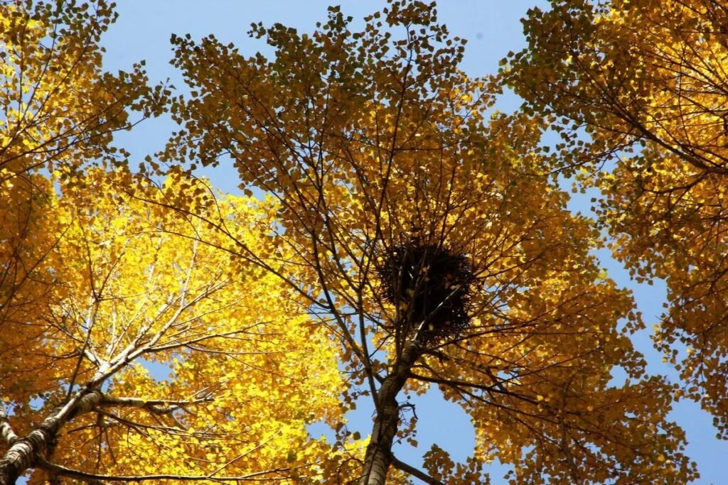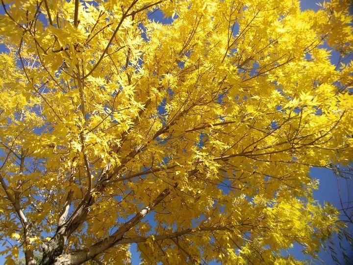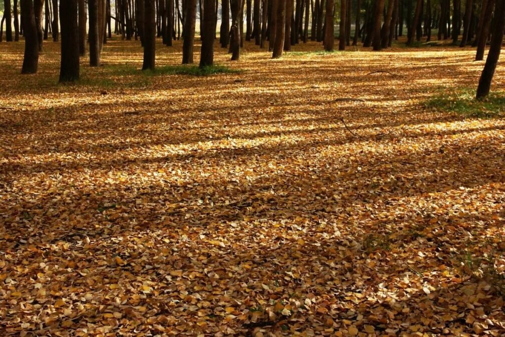 在一个小公园后面,我发现了一片小树林,铺满了金黄的落叶,让人想到天堂黄金铺地。