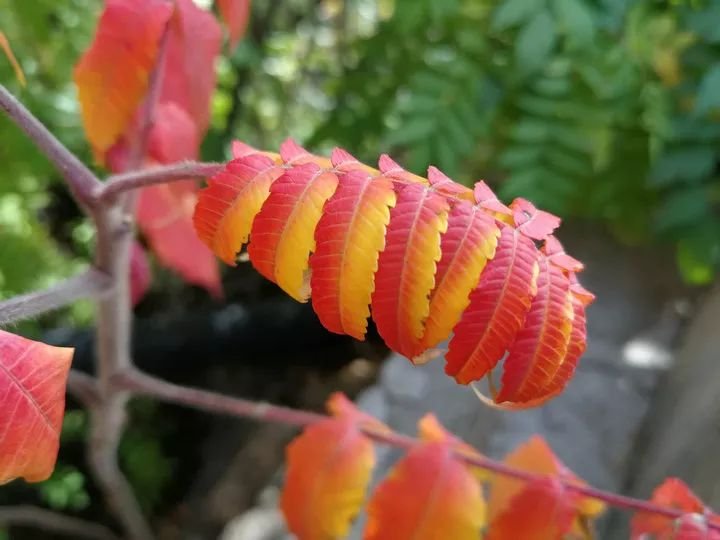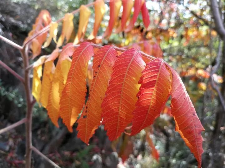 在上山的过程中,拍到一些火焰树的树叶,颜色让人心醉。