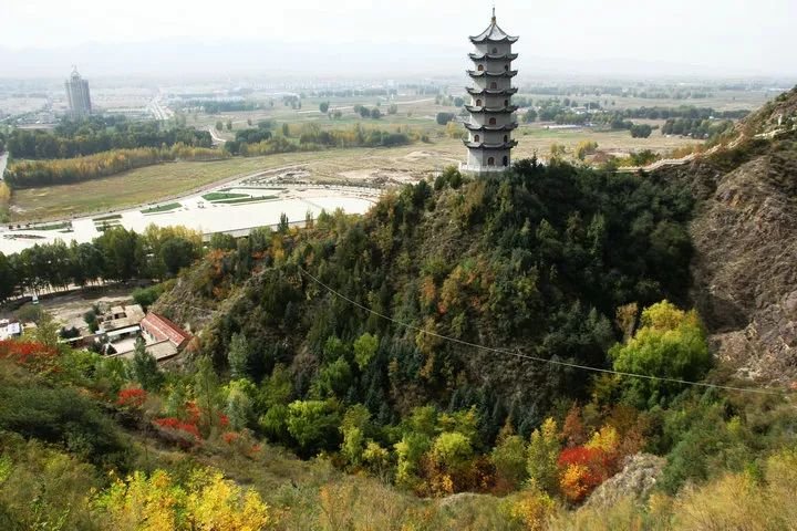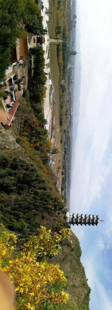 最后,我们沿着一连串美丽的亭台楼阁爬到了县城边的一座小山上,天气如此晴朗,俯瞰大地,一切尽收眼底,我们的旅游,也达到了一种新的满足。