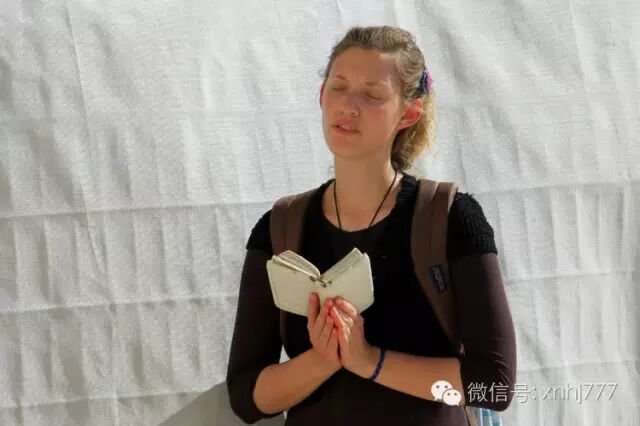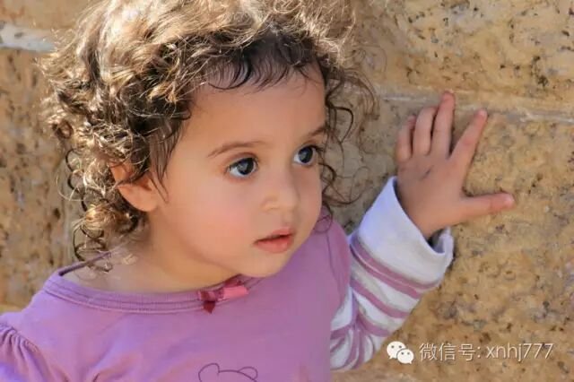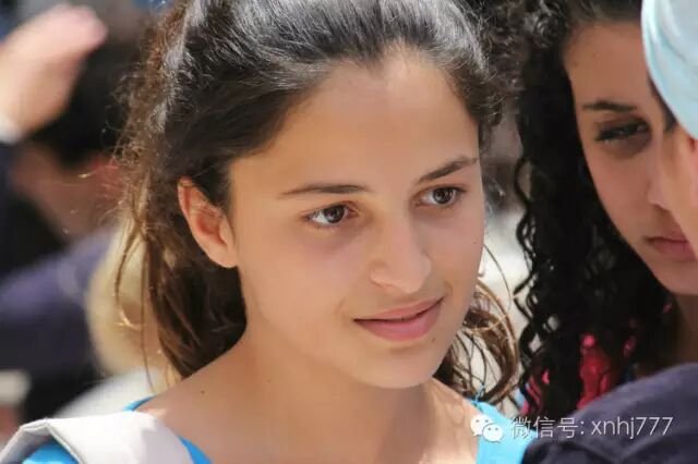 耶路撒冷,哭墙:一位长发飘飘的少女,简单的首饰,天赐的美貌。