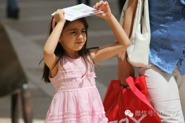 耶路撒冷:一位小女孩用报纸遮阳,爱美是女人的天性,从小就开始了。