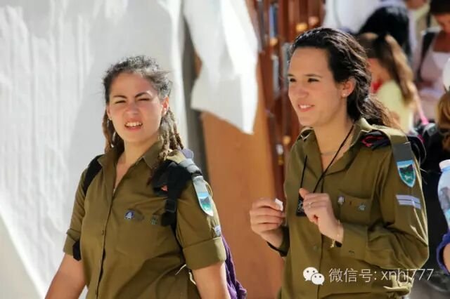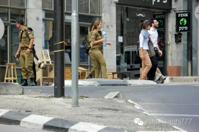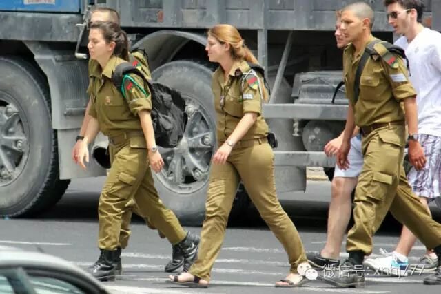 耶路撒冷:一群生气勃勃的军人,女兵们显得特别突出。
