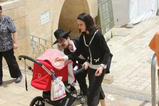 耶路撒冷,哭墙:这对正统犹太教的夫妻在精心照料他们的孩子,这位犹太教的女子让我想起箴言中贤德的女子。
