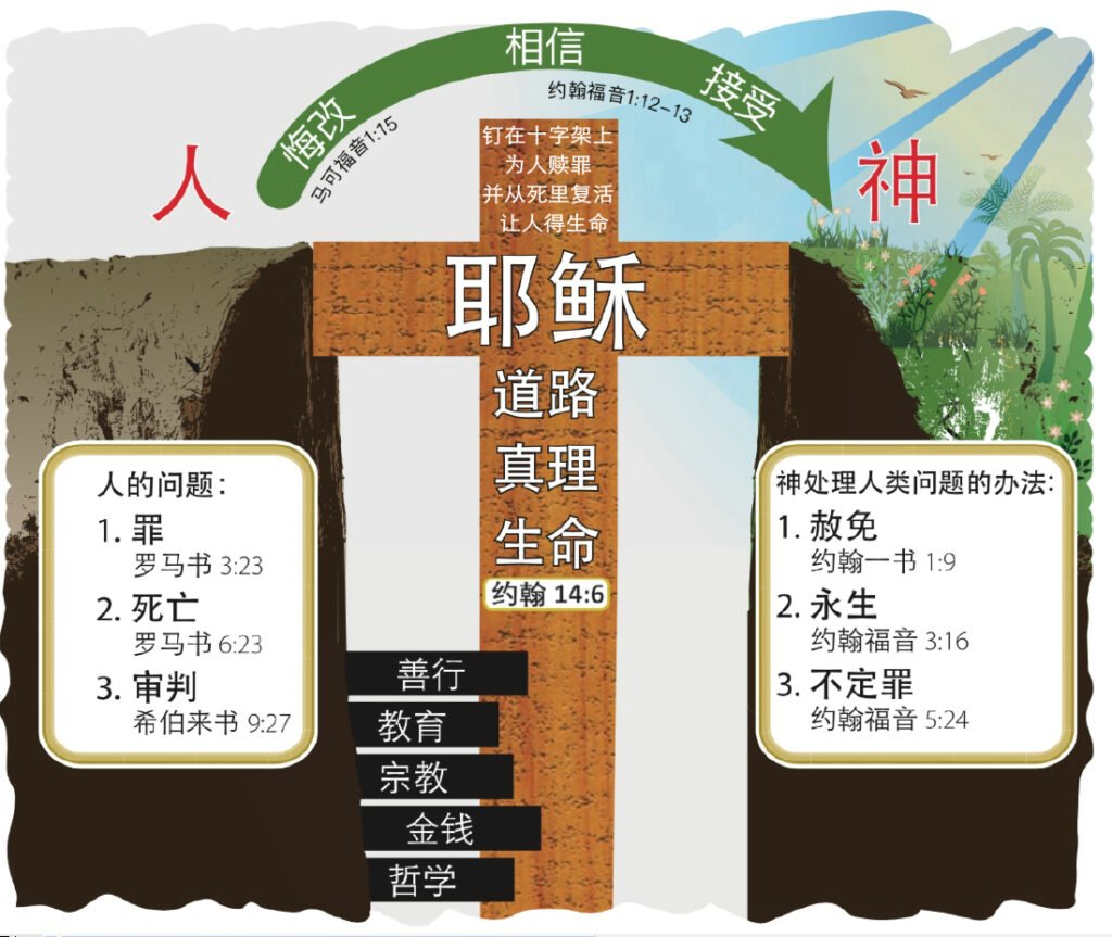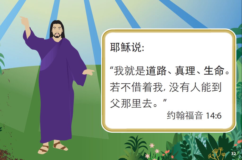 耶稣说:“我就是道路、真理、生命。若不借着我, 没有人能到父那里去。”约翰福音 14:6