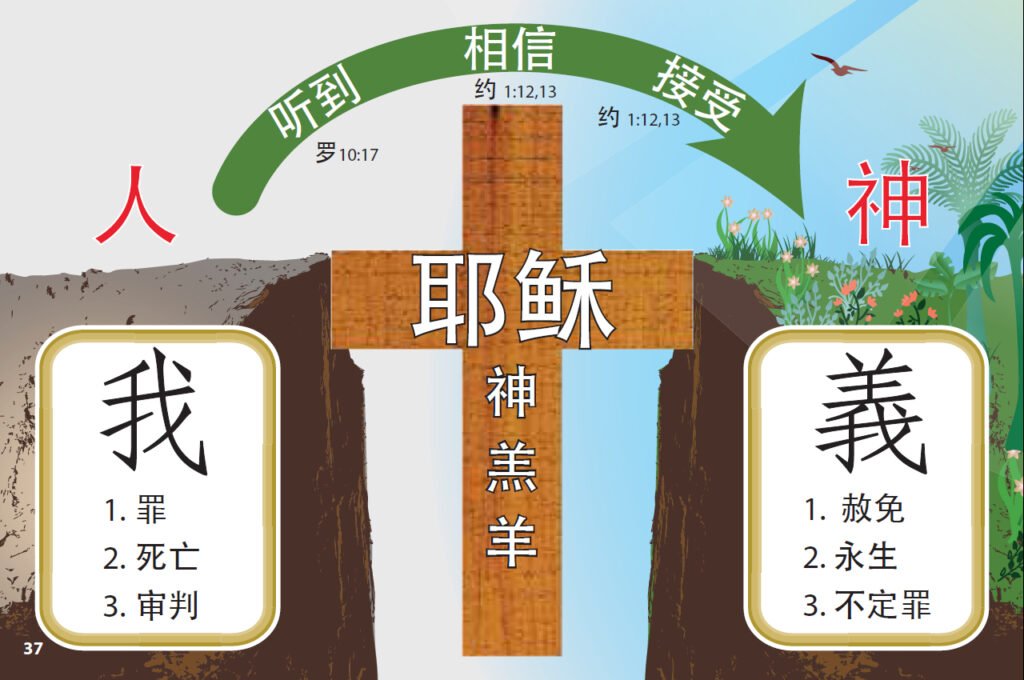 要在神面前成为公义, 我需要来到神羔羊的庇护下, 相信并接受耶稣。以后神和我之间再没有隔绝, 我接受赦免、永生和不定罪, 成为神的儿女,神成为我天上的父亲, 我找到了真正意义的福。
