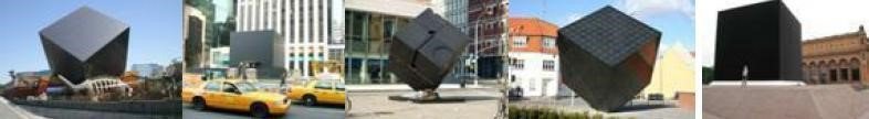 今天在世界各地,依然可以看见许多代表Saturn(农神)的黑色巨石。从左往右是:圣塔-安娜城,纽约城苹果24小时店,曼哈顿,丹麦,澳大利亚。