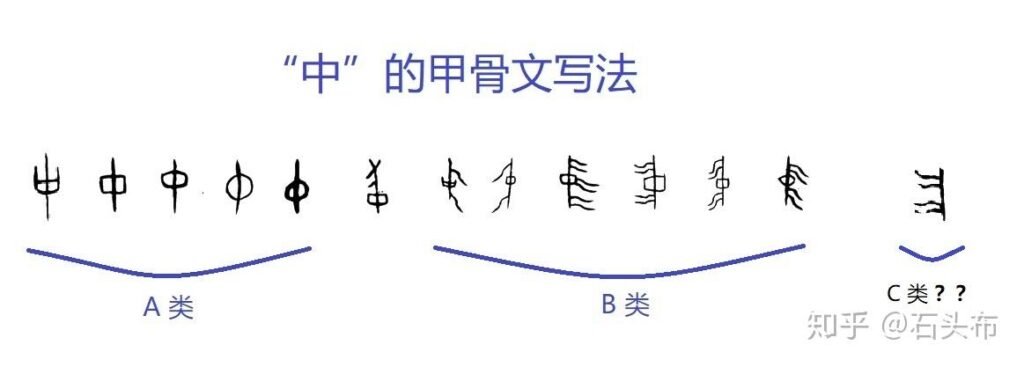 要探究“中”的原始含义,需要一步一步来。按照我们的惯例,先来看看甲骨文。