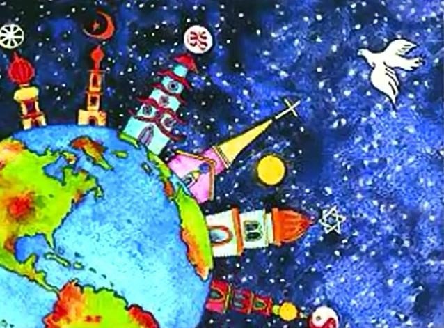 当他们放弃不同的绝对真理的意见,彼此搀和,展开跨信仰对话的时候,他们就会意识到,原来他们不过是同一体系的不同部分罢了,然后合一就到来了。