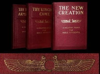 最后他说,“于是作为地下共济会员的你和我,是在一起等候共济会的主人重归世界……” 因此,当我们发现这个带翅膀的太阳圆盘符号在早期《守望塔》中经常出现时,就不会感到惊奇了: