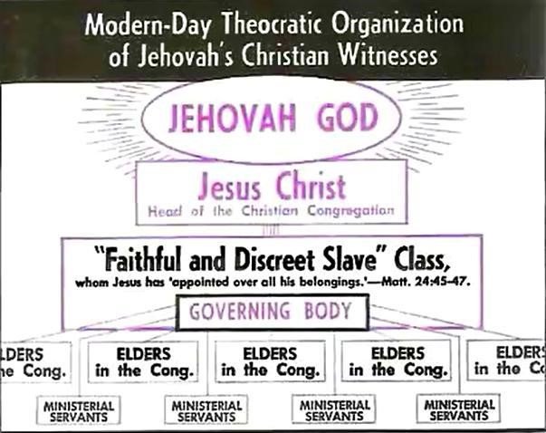 耶和华见证人的整个组织是由一个治理机构控制的,这个机构由10到15个成年男人组成,他们相信自己从灵界得到直接的指引。这个治理机构通过《守望塔》指导追随者们,他们的命令由地方会议的长老执行。基本上,我们是在谈论一个权力层次体系,在这个体系里,上层的人声称他们有属灵的权威来担当世俗的权威。耶和华见证人的信徒被教导说,单靠圣经还不足以明白神的事情,他们需要从《守望塔》传递过来的,治理机构的教导,才能正确地理解圣经。
