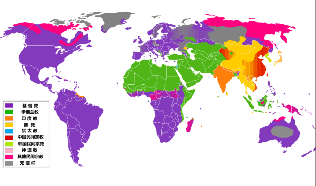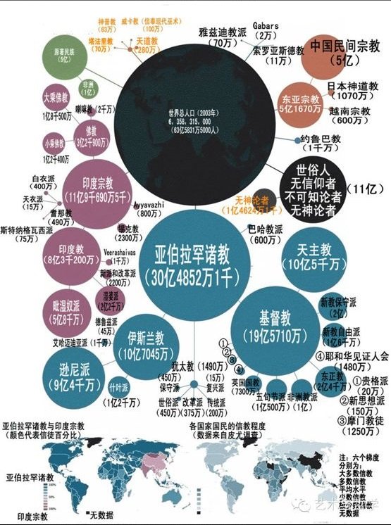 另一个维度的宗教人口分布,宗教的统计不可能全面,仅做参考