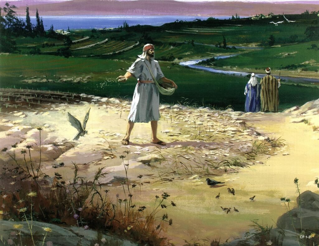 耶稣又设个比喻对他们说:“天国好像人撒好种在田里,及至人睡觉的时候,有仇敌来,将稗子撒在麦子里就走了。到长苗吐穗的时候,稗子也显出来。田主的仆人来告诉他说:‘主啊,你不是撒好种在田里吗?从哪里来的稗子呢?’主人说:‘这是仇敌做的。’仆人说:‘你要我们去薅出来吗?’主人说:‘不必,恐怕薅稗子,连麦子也拔出来。容这两样一齐长,等着收割。当收割的时候,我要对收割的人说,先将稗子薅出来,捆成捆,留着烧;惟有麦子要收在仓里。’”(马太福音 13:24-30)