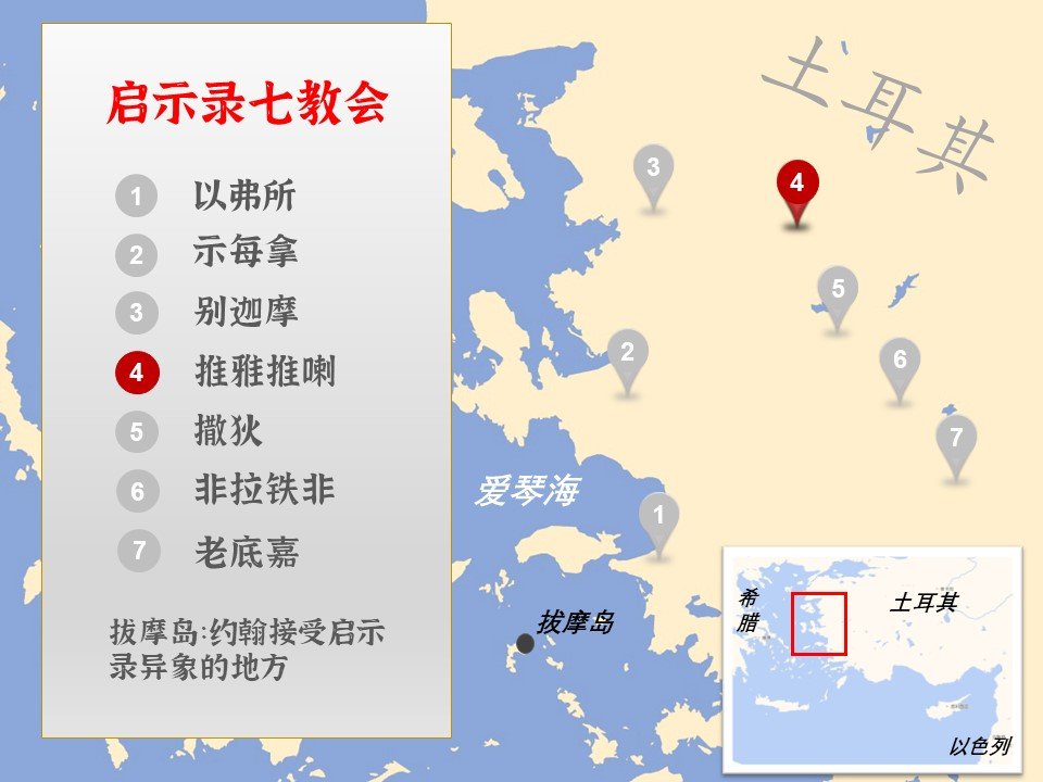 在给前三个教会的书信里,得胜者的呼召和应许,都是在“凡有耳的,就应当听”之后。但从推雅推喇教会起,即四个教会的书信里,得胜者的呼召是在前。这有什么意思呢?这表明前三个教会是一类,将成历史过去,后四个教会是一类,将继续存在直到主再来。前三个教会是出来又过去,后四个教会是出来不过去,一同继续到主再来。