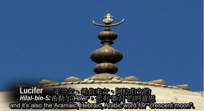 瓦利德:大多数欧美人士阅读旧约《以赛亚书》14章,那里提到了路西法(撒旦),看看英文译本怎么拼写–路西法(Lucifer)。我去查找希伯来语,希伯来语是“希勒-宾-萨哈”(Hilal-bin Sahar):“你是怎样从天上坠落的,希勒-宾-萨哈(Hilal-bin Sahar)”。“希勒尔-Hillal”是“明亮”的意思;亚兰文、希伯来文、阿拉伯文的“希勒尔-Hillel”,也有“新月-crescent moon”的的意思。所以,阅读上下文就是:“噢!新月啊,晨星之子啊,你是怎样从天上坠落的?”这里有新月、有星辰,也就是伊斯兰教的象征,以路西法的名义。我们不要忘记在《以赛亚书》14章,它继续说,“当他被囚时”,这个路西法,这个希勒尔本,他要被审判。人们会看着他说:“使大地颤抖,使列国震动的就是这个人吗?”他们说,这是来自天上的路西法的叛逆。路西法什么时候为成为一个人?——敌弥赛亚,敌基督,毫无疑问。