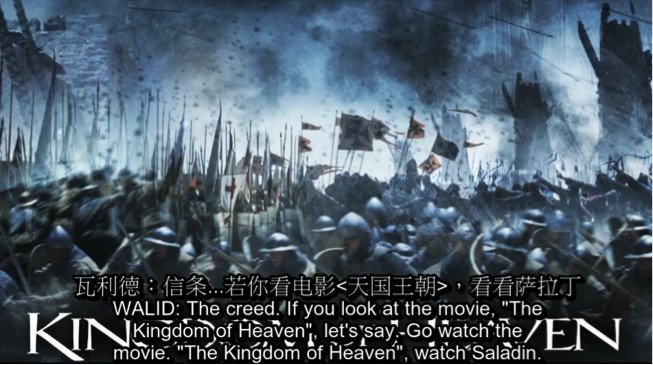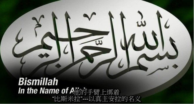 瓦利德:信条或教义。若你看电影《天国王朝》,看看萨拉丁。萨拉丁是那个抵抗十字军东征的穆斯林英雄,他坐在帐棚里,手臂上绑着什么呢?他的手臂上绑着“比斯米拉-Bismillah”——以真主安拉的名义。