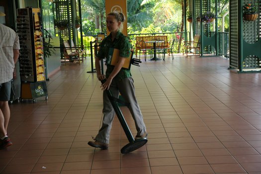 比如在凯恩斯,从库兰达回来,我们几乎是最后一批游客了,工作人员已经在做下班的准备工作了。这时我注意到了一位年轻的女士,穿着这里的标准工作制服,正在挪动一批铁敦子,就是为了让游客排队,上面可以拉伸缩线的那种。这东西很重,需要在地上滚动着才能挪动,女人去做还是有点儿费劲的,但这位女士干着很认真,甚至很愉快。我发现,就在她前方的大厅角落里,已经整整齐齐地摆放了很多这样的铁家伙了。如果在中国,像这样的铁敦子,恐怕不会有人太认真的,很可能被胡乱地扔在角落,反正下班以后不会有人看到了。但这位女士,却以一种认真愉快的态度做着这样一个简单费力的工作,而且周围并没有任何人在监督她。