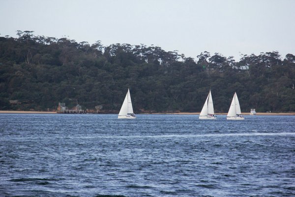 然后参加观赏海豚的一日游,虽然我们已经在渡轮上已经看过海豚了,但没办法,在国内已经就订好了。这趟旅行就像我们中国常说的,是一趟喝水也会塞牙的旅行。早上我们刚出发,天就下起了雨,要知道,悉尼360天,只有不到60天不是晴天,大概1/6的概率,恰恰被我们赶上了。第一个景点是动物园,大部分有趣的动物都在凯恩斯看过了,我们只是冒着雨在园子里走了一圈;接着是主项目,来到一个海湾看海豚,雨倒是停了,可是轮船在硕大的海湾走了几圈也没看到海豚的影子,我们只能失望地打道回港(让我们略感安慰的是,我们早已经看过了,比周围的人好一点);最后是滑沙……雨又下起来了,我们到了滑沙的大沙丘看了一眼,就回来了,没法滑……竟然有几个疯狂的家伙在雨中扛着家伙上去了,沾了一身泥沙回来…..他们是在心疼钱白花了吗?