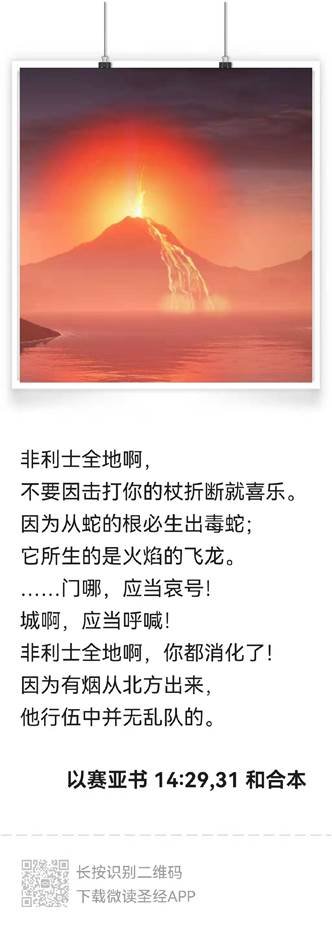 又一次出现蛇,而且已经会飞了,而且是从北方来的,我们注意到,在护卫会幕的十二支派中,但支派的方位正在北面,北方是黑暗的方向,以色列的敌人大部分都是从北方出现。让我们再来看另外一段预言: