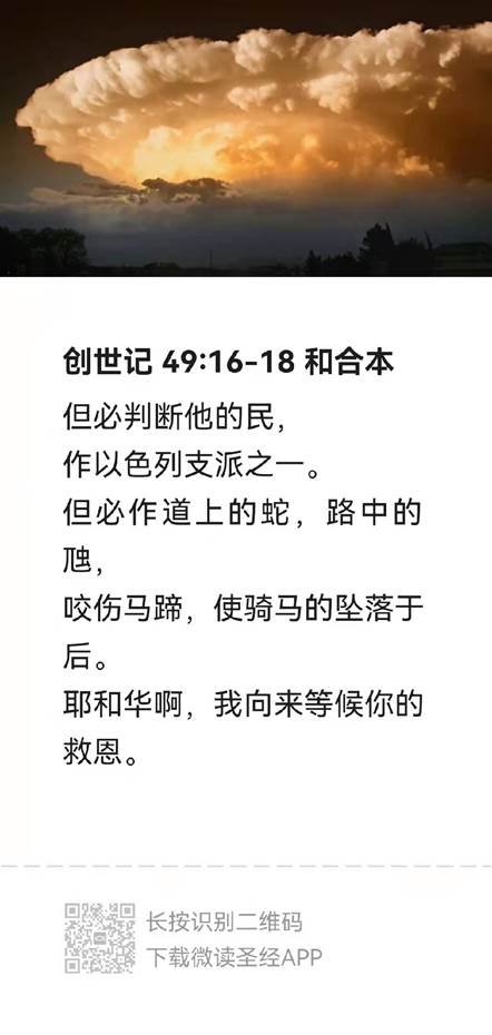这里又一次提到了“审判”(判断),但支派要审判以色列人,以什么方式呢?成为蛇!去咬骑马的。我们看到但支派后来果然成为一个毒辣的支派。