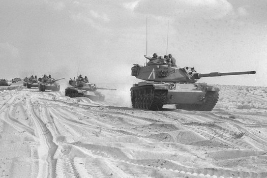 第四次阿以战争,以色列也同样面临生死存亡。1973年10月6日,埃及和叙利亚在周围阿拉伯国家和苏联支援下,精心准备多年以后,在以色列的赎罪日突然发动了进攻。近300架飞机,2400多辆坦克和装甲车,十几万士兵,从西奈半岛(西线)、戈兰高地(北线)如同潮水一样扑向以色列,让大部分士兵因为赎罪日在休假的以色列措手不及,头三天遭受了重大损失,亡国的危机又一次摆在面前。