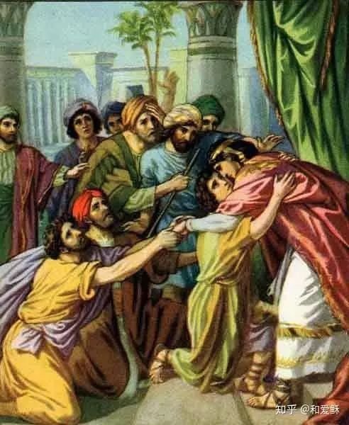 当约瑟的弟兄发现埃及有粮食,他们来到埃及为他们的家族买粮。他们需要打交道的这个人就是约瑟。他们不知道他是谁,但他们来到约瑟面前,在他面前鞠躬,约瑟的异梦成就了。