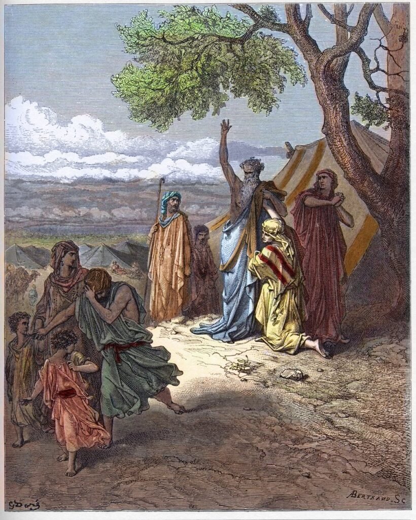 这段预言涉及到挪亚和他的三个儿子的家庭关系。事情起因于挪亚,他喝醉了,于是在帐棚里,不顾父亲尊严地,放肆地裸露着身体。喝酒不是罪,但喝醉就不同了。圣经告诫我们“不要醉酒”,因为醉酒会释放我们的情欲,让我们为所欲为,触怒上帝。挪亚是个义人,但不是个完人,他也会犯我们常人会犯的错。
