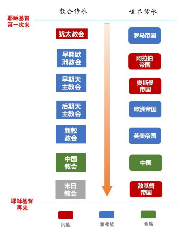 伴随着世俗权柄交接的,是教会权柄的交接,中国-含族建立的教会,必然与雅弗族和闪族建立的教会有所不同,中国-含族性格中一些优秀的成分也会被神使用,来复兴一个强大的教会。