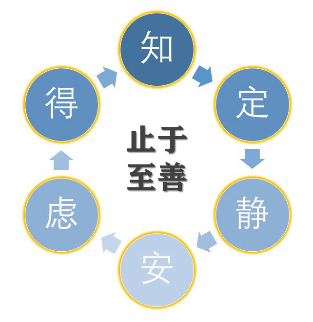 知止而后有定,定而后能静,静而后能安,安而后能虑,虑而后能得。物有本末,事有终始。知所先后,则近道矣。