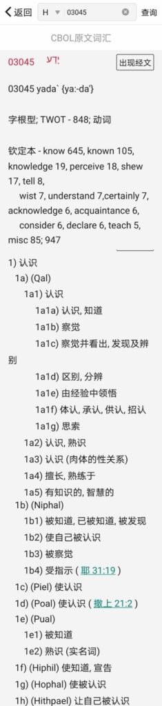 知识这个词的原文还有一个词根03045,查阅结果如下: