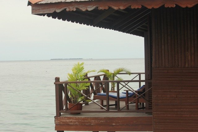 第二天,我们一大早就从斗湖搭车到仙本娜(马来西亚的地名真是有趣啊!)踏上了去往马布岛的快艇,我们的目的地是在岛上的西巴丹水上屋度假村,要在那里呆五天。但从一开始起,我们就发现苗头有点儿不对,早上就开始下雨,快到中午我们到了马布岛,竟然是狂风大作,狂风加大雨,我们呆在度假村的大堂里,只能眼巴巴地看着外边的大海熬着宝贵的时间。在这段时间里,新认识的朋友告诉我们这是马来西亚的雨季,我们的心更加低沉了,担心以后几天也会是这样,这不是不可能的。我走前网上看了马布岛的天气预报,发现以后几天都是阴雨,难道我们住在昂贵的水上屋里,就只能打打扑克,看看在狂风和阴雨中翻滚的大海吗?