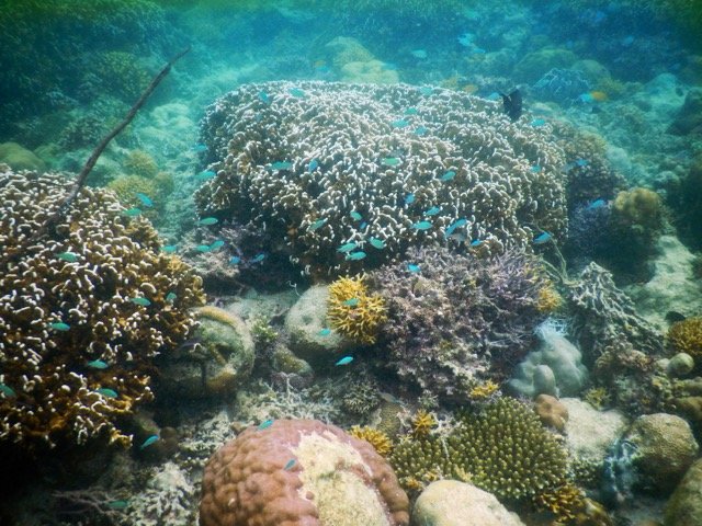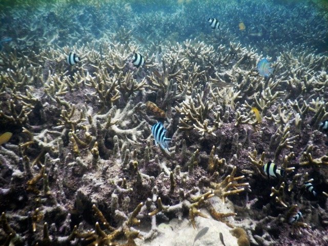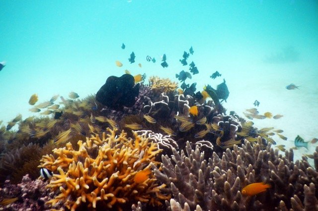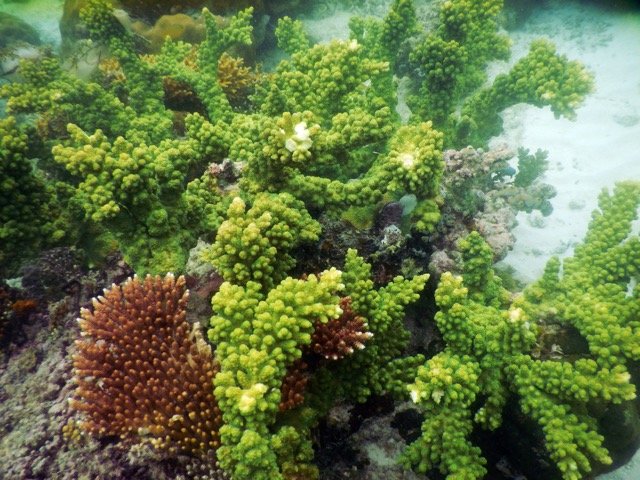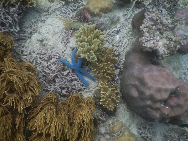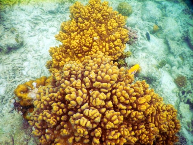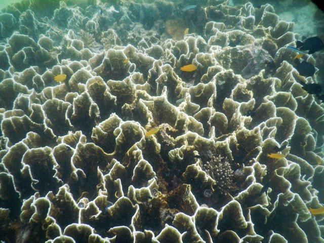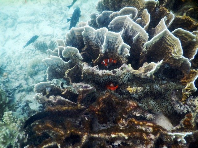 在离开度假村的那一天,离开之前,我决定最后浮潜一次。这一次,我没有带让人分神的水下相机,只是带着呼吸器在水里四处游动。我与鱼群欢快地嬉戏,也可以观察任何感兴趣的生物,或者悬在水中,静静欣赏着水底延伸到深海的,就像小山坡一样的珊瑚礁…….这时,我的心是如此单纯,就像孩子一般……是的,此时我才算是触摸到了一些浮潜的真谛。
