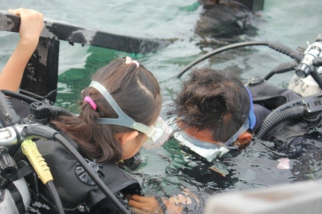 浮潜了一段时间以后,我们决定体验一下深潜。