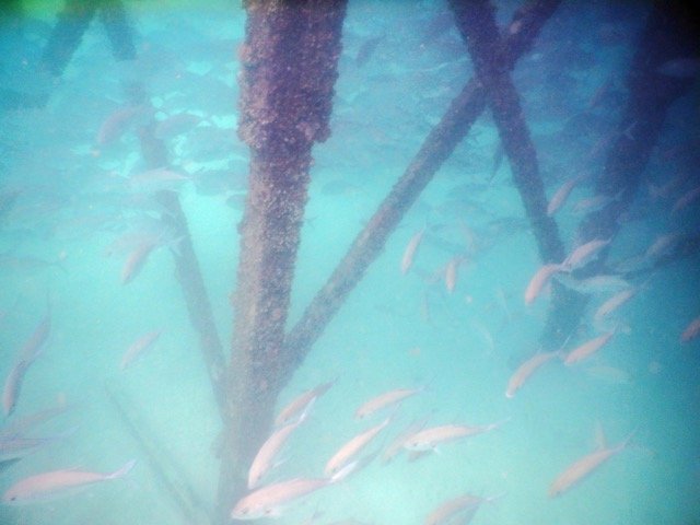 但是,心情平复以后,我终于可以欣赏海底的美景了:两只大海龟静静地呆在水底沉船的架子上,海底的鱼儿就像我们不存在一样游来游去,海底还有一个像章鱼又不是章鱼的大家伙在沙子上慢慢移动……