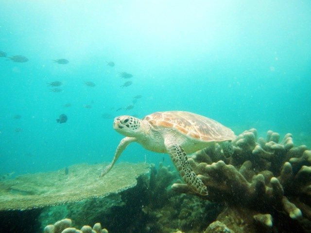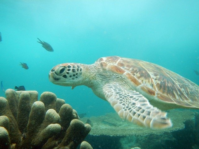 为了更近地欣赏这海底的美丽,我没带救生衣,也没带呼吸器(那时我还没有领会呼吸器的妙处),常常一个猛子就扎进四五米深的海底,与海龟、鱼群和珊瑚礁来个亲密接触,最后搞得自己简直筋疲力尽,但我知道这是值得的。我看见了神的荣耀,神所造这一切的美丽,是吸引我们认识他,归向他,正如圣经所言:神造万物,各按其时成为美好,又将永生安置在世人心里。(传道书3:11)