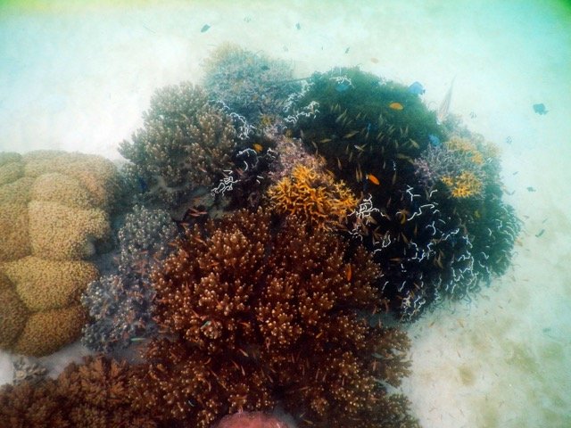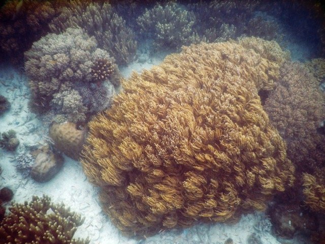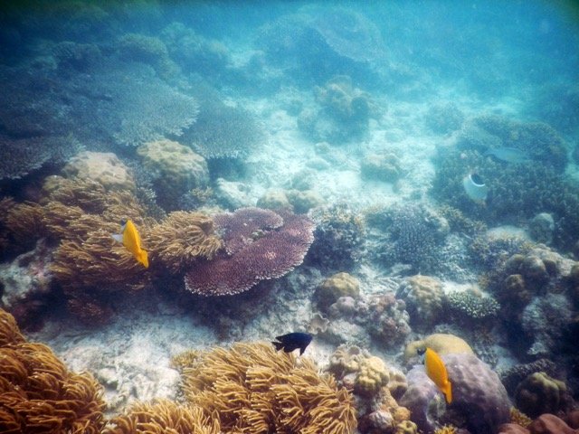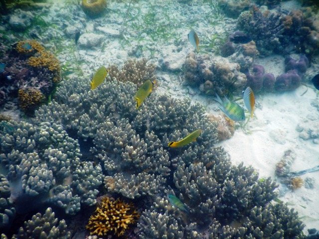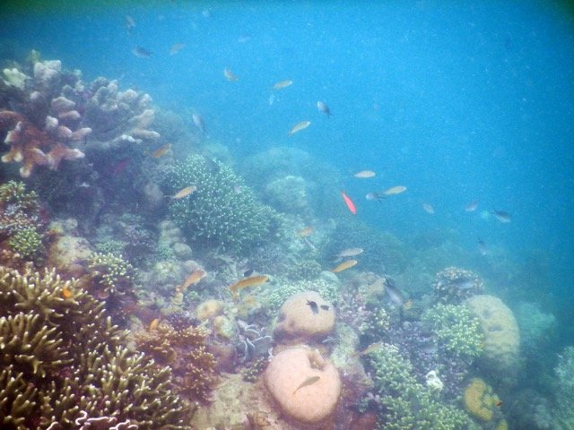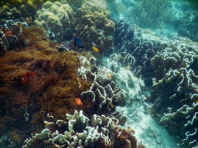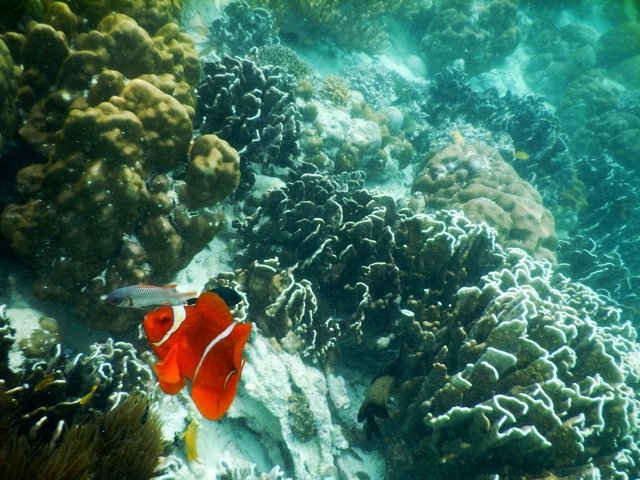 诗巴丹岛真正的美丽是在水下。与这里的海底风景相比,马布岛简直就是小儿科了。清澈的海水可以让我们对很深之处都一览无余,是浮潜的绝佳之地。而且这里的海底风景绝对称得上是气势恢宏:奇形怪状的珊瑚层层叠叠,无数美丽的鱼儿让人目不暇给,海里还游动着很多大家伙,有鲨鱼、有海龟,悠然游行在属于他们的这片大海里。据说诗巴丹岛是由于地壳板块挤压而形成的,小岛被一大圈硬珊瑚环礁所包围,然后一步跨出便是深深的海崖,落差达到600米以上,果然如此,稍微远游一些,就会发现那里黑乎乎的,深不可测。