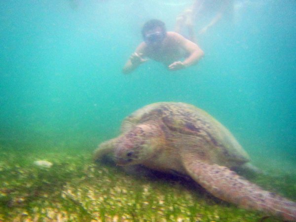 从这次认识以后,他就特别照顾我们一家。后来还特意带着我们去度假村周围的水下去看了一只五百年的大海龟,那只海龟确实硕大无比,身长接近两米,让我们长了见识。我们给了他一笔不少的小费,让他给自己的孩子买些东西,他接受了,眼神里充满了感激。就在这相互照顾的短短几天里,我们之间就建立了一种友谊之情。