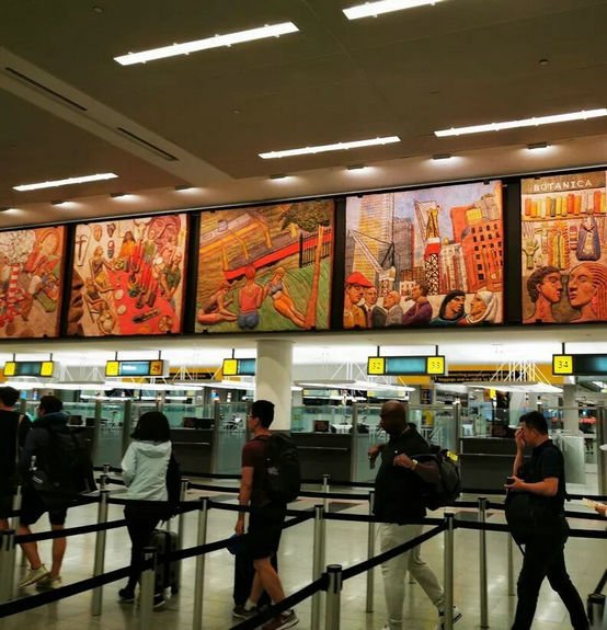 我们到纽约已经将近当地时间12点了,在昏昏沉沉和小兴奋之间来回交替的我们,光是用机器扫描护照又消耗近一个小时(话说这机器又破又难用,我回来看报道,后来这个机器大面积死机,许多人滞留纽约机场时间远超我们,所以我走前的担心并非没有道理)。