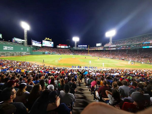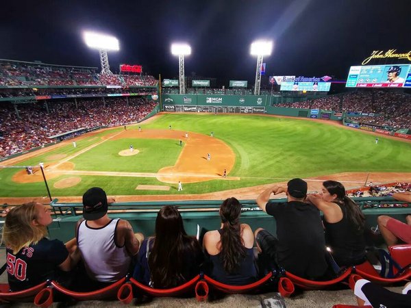 晚上回到酒店,隔着一条街,我们看到对面有一幢巨型建筑物,灯火通明,锣鼓喧天,就好奇地走过去看了看,才发现这原来是个棒球场!——波士顿红袜队的主场芬威球场,而且当晚就有一场与多伦多队的比赛。好呀!没有NBA,看场棒球赛也不错,而且棒球赛更有美国味道。与所有的大型体育赛事一样,我们一进球场就被震撼了,波士顿大街平时人并不多,但这里好像全市人都来了,那种山呼海啸的气氛,一下子就把我们卷了进去,美国人对体育的热情真不是盖的。