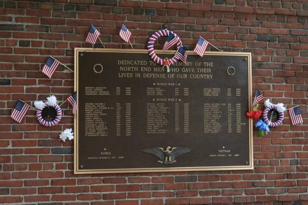 一堵军人纪念墙,列举几个美国的主要战争,类似的纪念遍布美国各大小城市