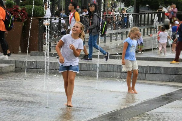露天音乐会的主唱是一位很有气场的黑人大妈,我们对黑人的音乐和歌曲并不感冒,但很容易就融入了现场那种轻松愉快的气氛中。在靠近黄昏的柔和阳光下,孩子们在喷泉中欢乐地玩水,人们悠闲地在草地上随处而坐,有几位美国大妈按捺不住随着音乐起舞,如此随性,又洋溢着一种美国式的单纯和快乐,如水流一般四处流淌,感染着在场的每个人。从此,这种美国式氛围就时时出现在我们的旅程中,带给我们许多喜乐。