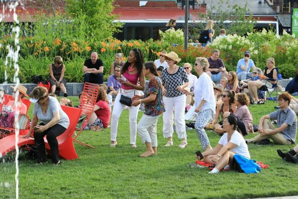 除此之外,其实波士顿也是个烟火气十足的城市。“自由之路”途中,会经过昆西市场,有各样的美食和当地特产,让我们流连忘返,吃饱喝足了,我们到一个街心花园闲逛,巧遇一场免费的露天音乐会。
