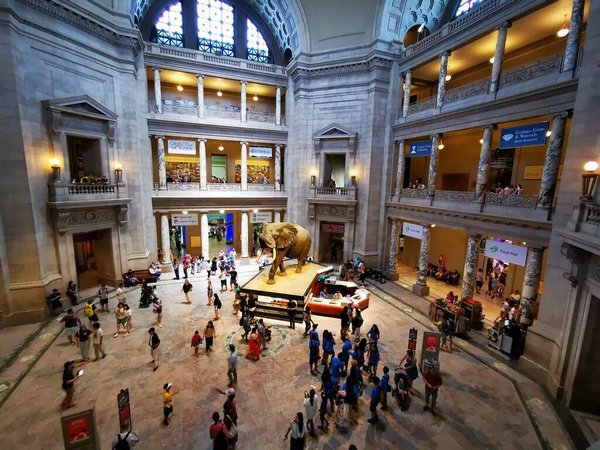 对于自然类博物馆,我本来就心向往之。西方的博物馆水平确实很高,展品精致,种类丰富,布局精心,还鼓励参观的人互动,在澳大利亚和加拿大都曾给我们留下很好的印象,再加上老早以前看过的《博物馆奇妙夜》,没有理由不来代表世界最高水平的斯密森尼学会的美国国家自然史博物馆(National Museum of Natural History)。