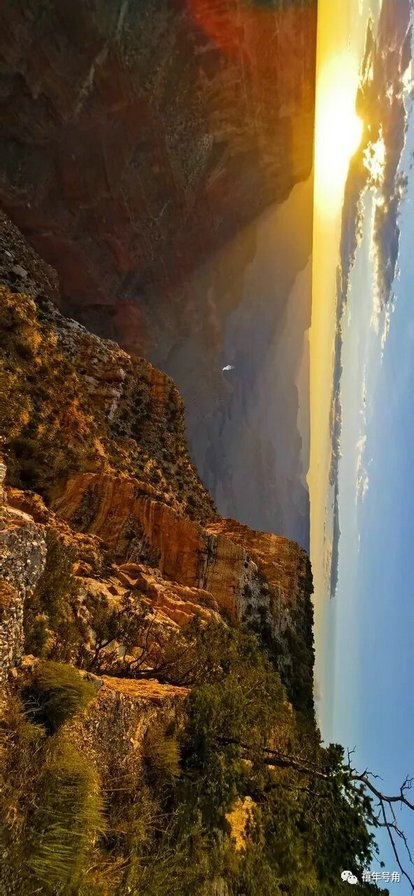 一切风景最重要的不是景物本身,而是光线,不好看的景物在光中,也都变得光彩照人了。在阴天,一切都变得灰蒙蒙的,而且没有光线,景物也变得平板化了,因为没有立体感和层次感。因此,神在《创世记》中说“神看光是好的”,而耶稣说自己是“世上的光”。而一天中最好的光线就是夕阳的光线,那是摄影和旅游的黄金时间,因为那光线真的就像黄金一般。当我们沿着峡谷的小路,一边走,一边玩的时候,那金灿灿的夕阳包围这我们,为周围的一切都镀上一层金色,使一切都有着一种莫名的尊贵感。在夕阳下,大峡谷那险恶的一面似乎也消失了,刺眼的红色也变成柔和的金红,而且斜射而来的光线让大峡谷里沟沟壑壑变得更有造型感。