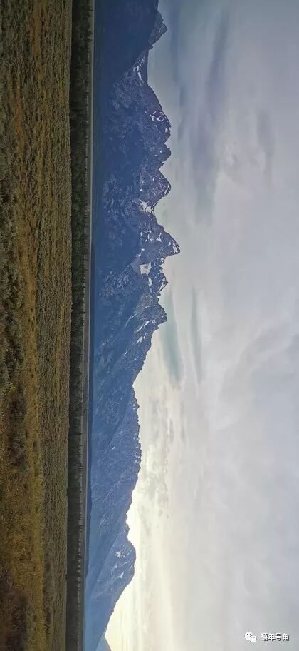 不过,在那个黄昏,这一片阴沉的天空,也给路上的山水森林抹上了一层神秘的色彩。进入公园之前路旁就是大提顿山,山顶还有积雪,从公路边到山脚下是一大片的高山草甸,沿着公路伸展向远方,有一种独特的凄美。