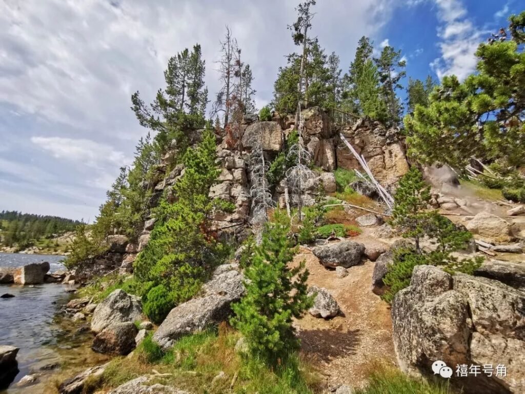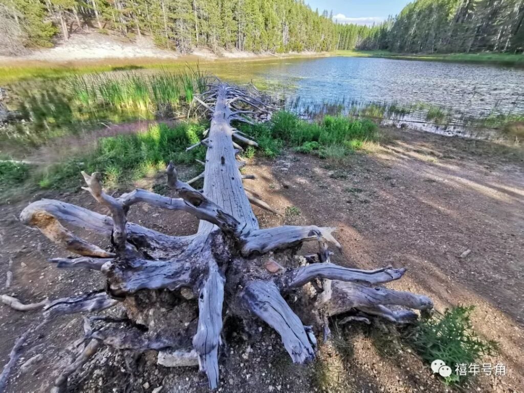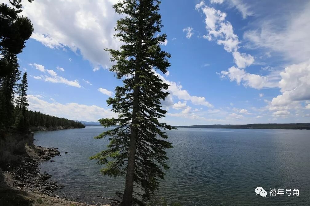 不过第二天清晨天就放晴了,对我们的旅行计划并无多大影响。黄石公园很大,公园内的公路就有好几百公里,主要的景点围着景区公路,形成一个大大的8字形。我们宿营所在的黄石湖,就在下8字,这一天的游览就沿着这个下8字的大圆圈展开。