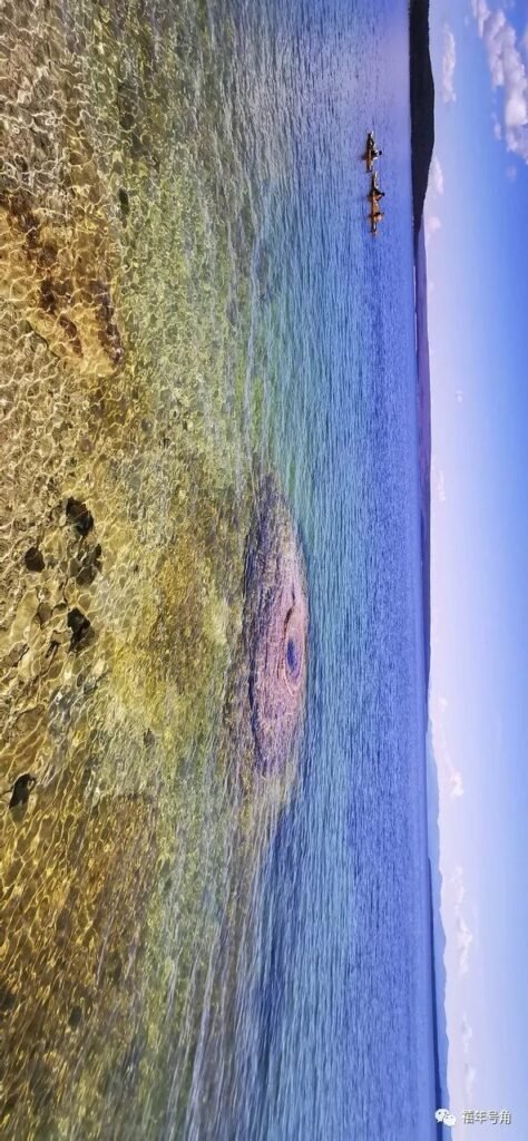 走在我们宿营的黄石湖前,就像打翻了上帝的调色板,清冽的湖水蓝中有绿,绿中有蓝,在阳光下就像一大块巨大的蓝宝石,向天边伸展,直到湖天一色,目光所到之处,蓝色与绿色又有不同的层次,也许圣经中提到的玻璃海就有点儿像这样吧。