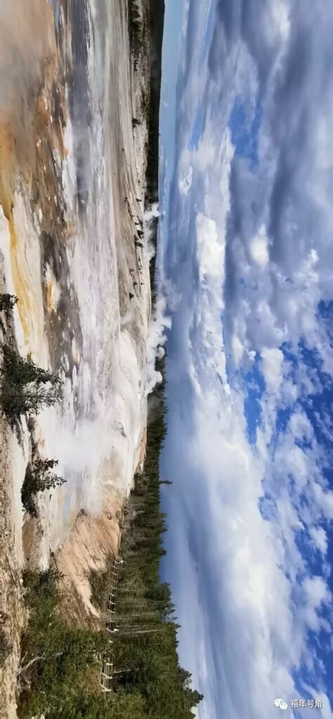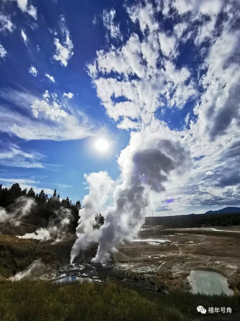 黄石公园确实是奇妙之处,这里其实是一大片活火山,湖水或者河水被地下的熔岩加热,瞬间变成沸腾的热水或者水蒸气,咆哮地喷射出来,有的喷射出来由几十米高,我们中间看到的诺里斯间歇泉就是这样,是的,美国的风景就是这样暴烈!