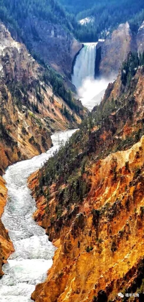 黄石公园也有一个瀑布,尼亚拉加大瀑布其实重在体验,从观赏性来说,黄石公园的瀑布更胜一筹,因为瀑布下面就是一个狭窄大峡谷,峡谷的峭壁上都是裸露的苍劲岩石,从远处看到瀑布飞流直下,沿着峡谷奔腾而来的时候,那种四射的动能让人简直倍感惊艳。