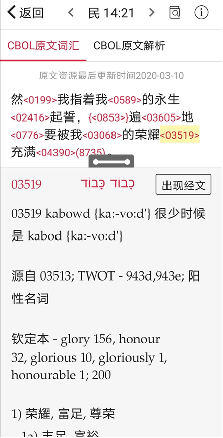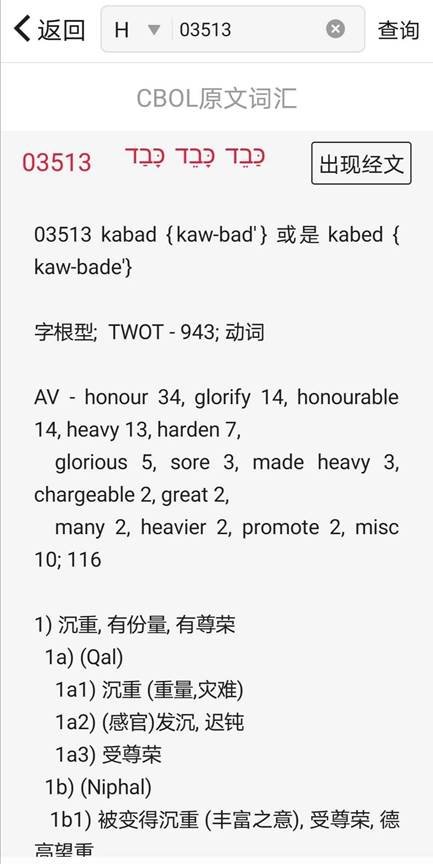 第三步,对旧约的原文“荣耀”进行查经。