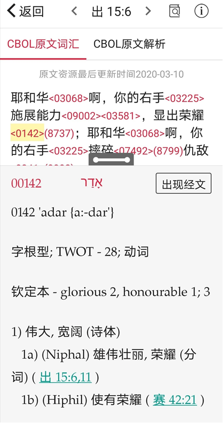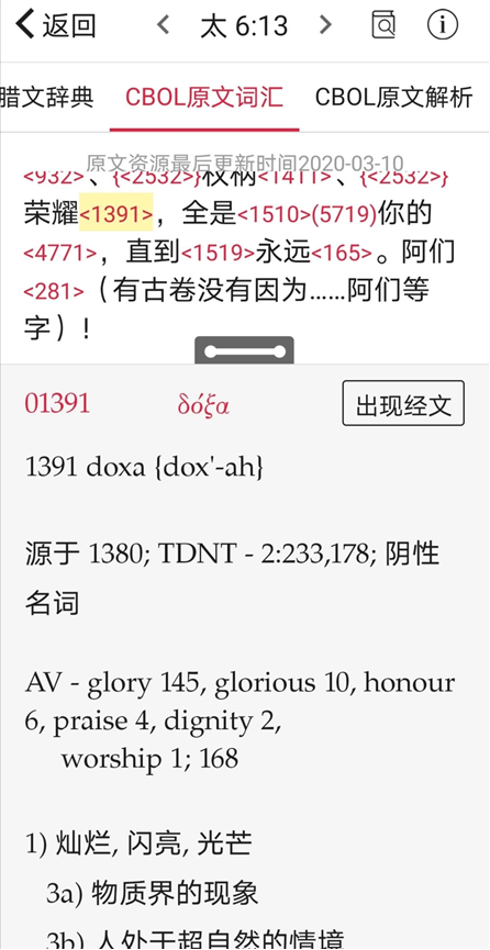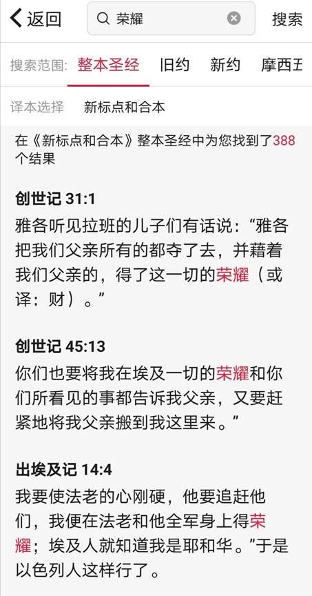 看懂了这三个页面,我们就可以用原文查经了。下面,我们就以中文词“荣耀”举个栗子,来看看如何进行原文查经。